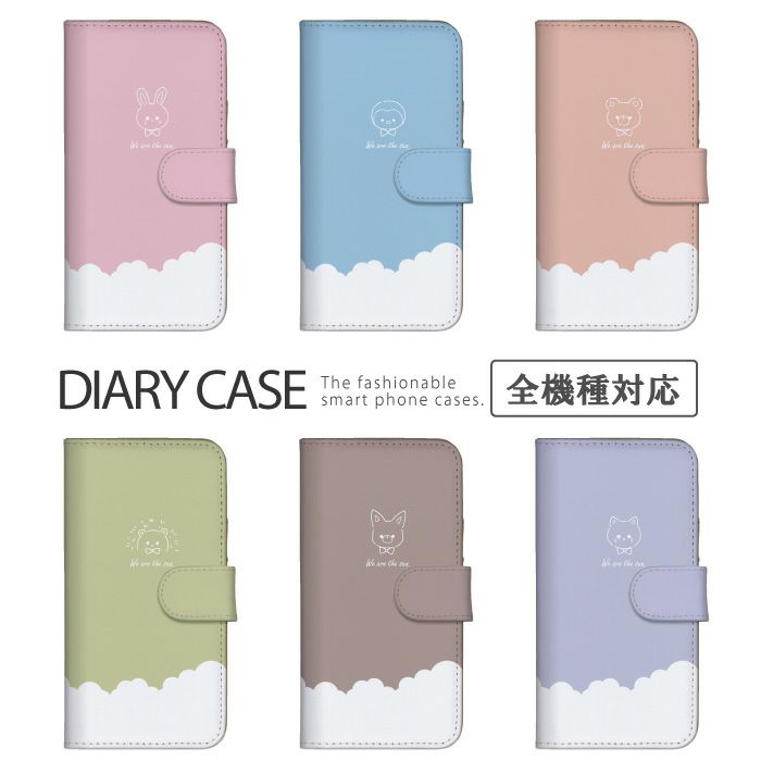 全機種対応 手帳型ケース スマホカバー バイカラー 大人女子 くすみカラー 猫 クマ アニマル