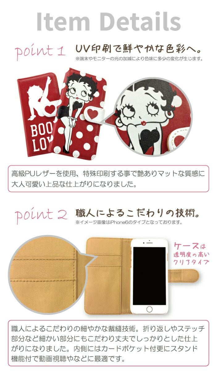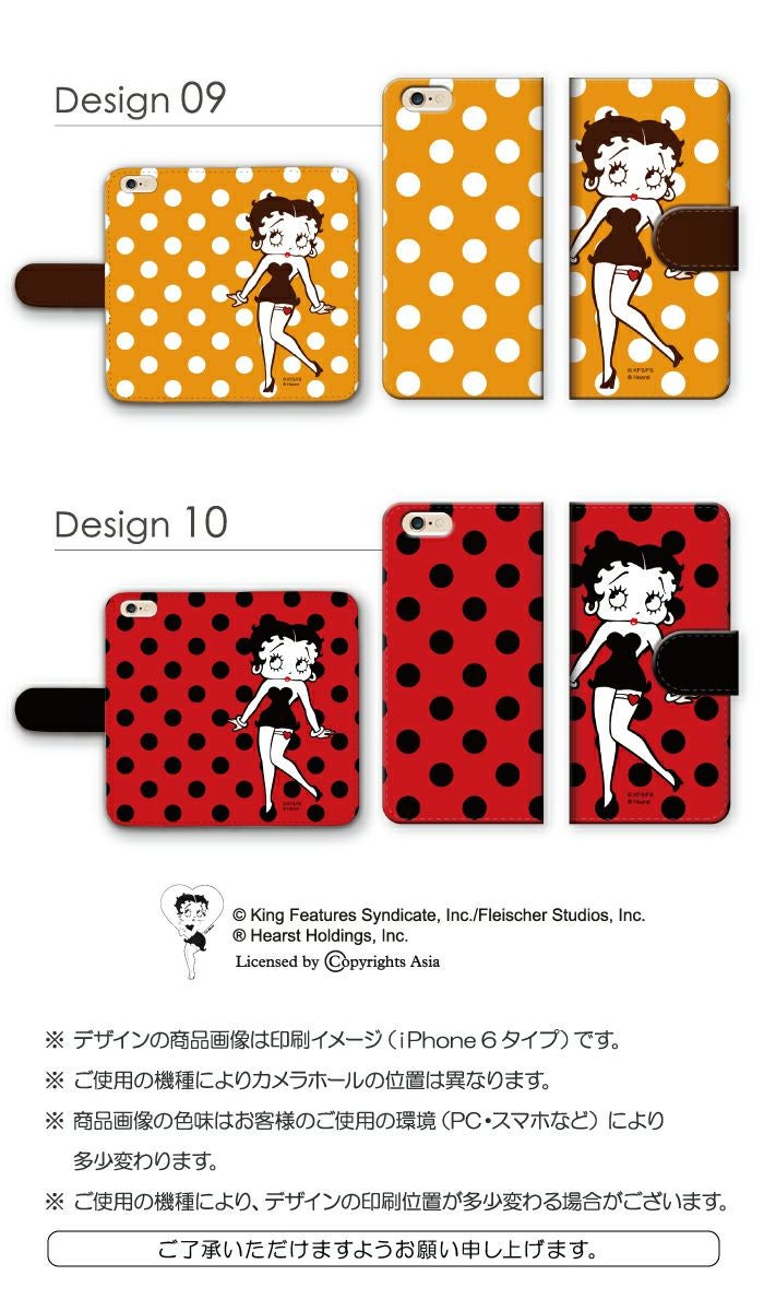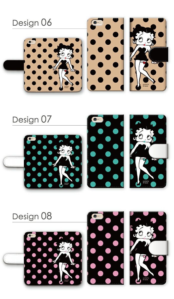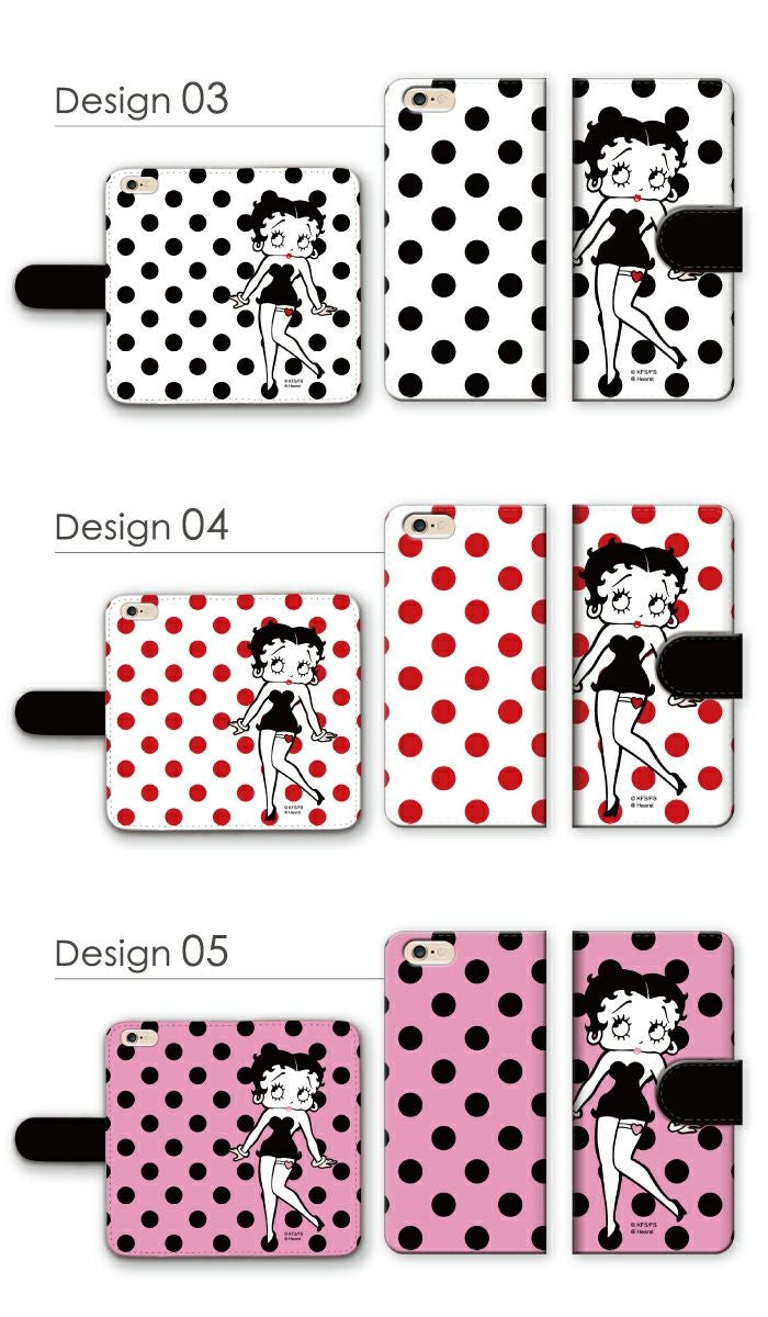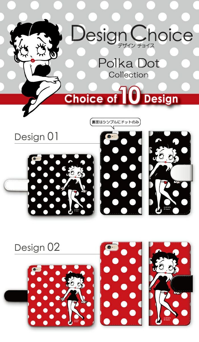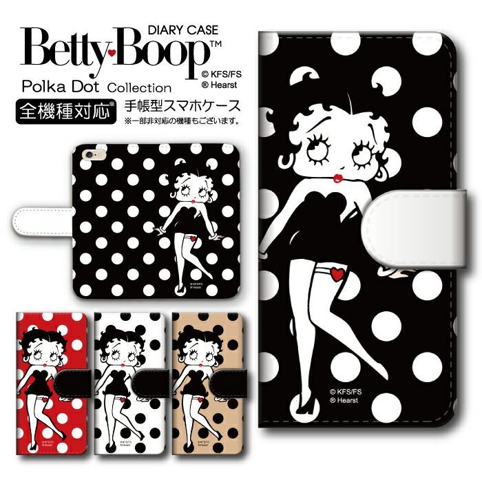 【 Betty Boop™ 】全機種対応 手帳型ケース ポルカドット柄 ベティーちゃん 正規品