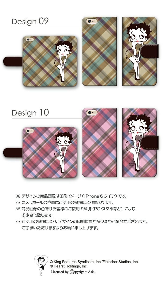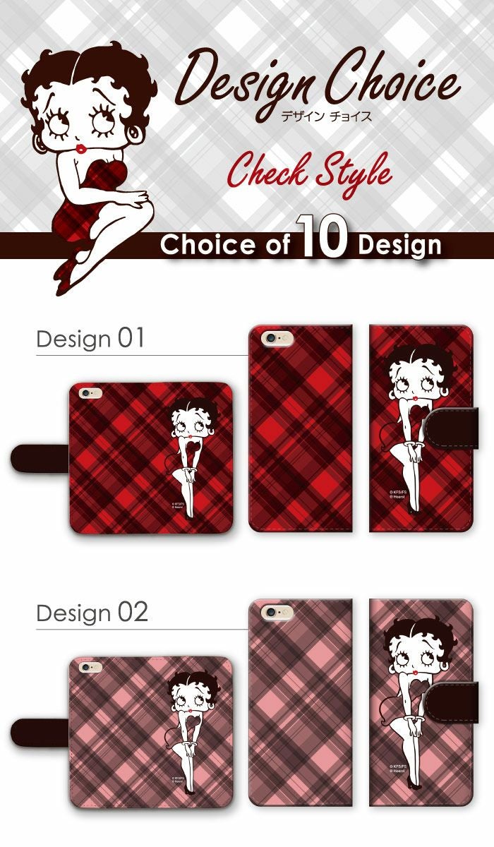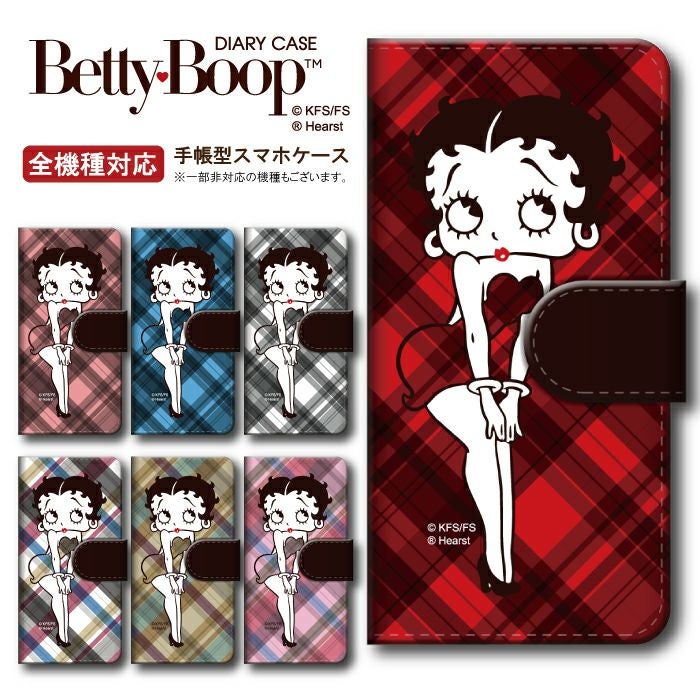 【 Betty Boop™ 】全機種対応 手帳型ケース オーバーチェック柄 ベティーちゃん 正規品
