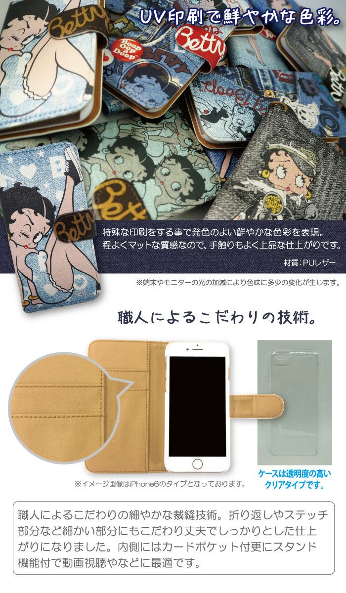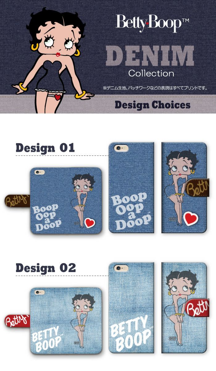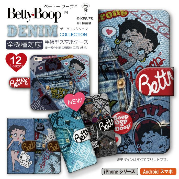 【 Betty Boop™ 】全機種対応 手帳型ケース デニムコレクション ベティーちゃん 正規品