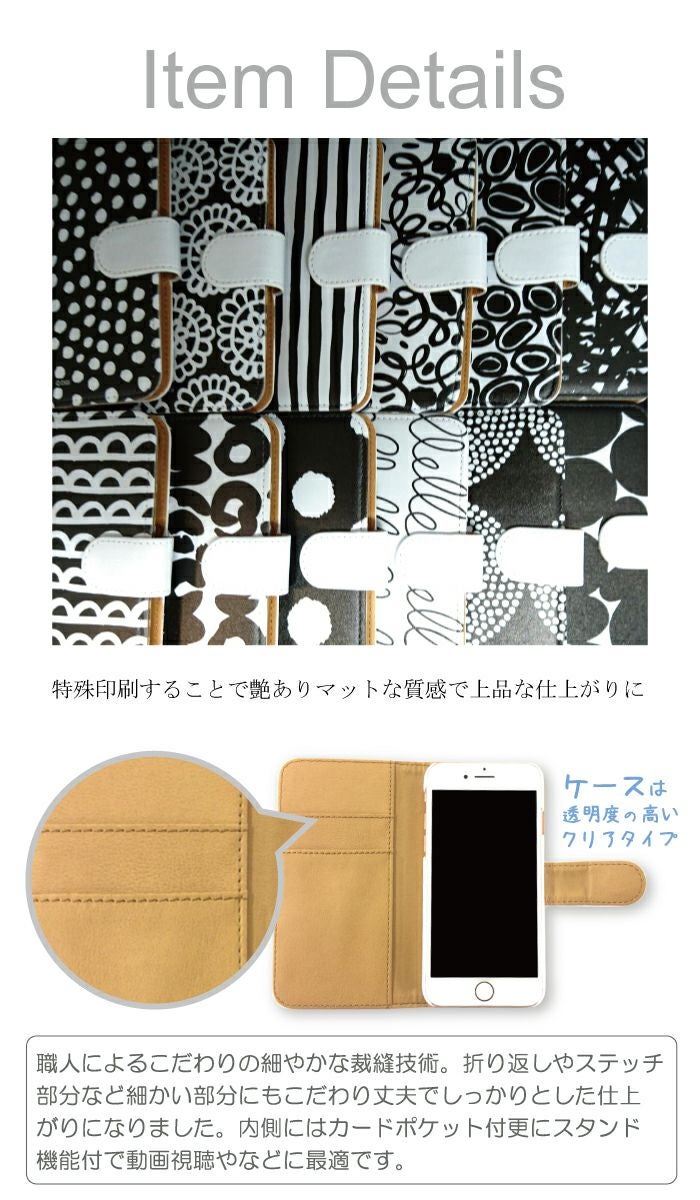 全機種対応 手帳型ケース スマホカバー モノクロ イラスト アニマル