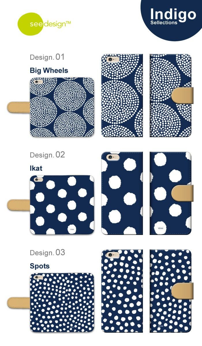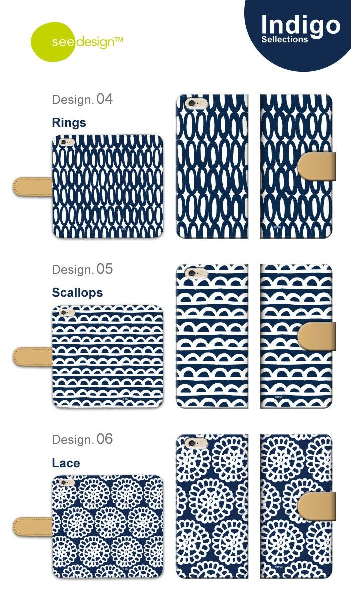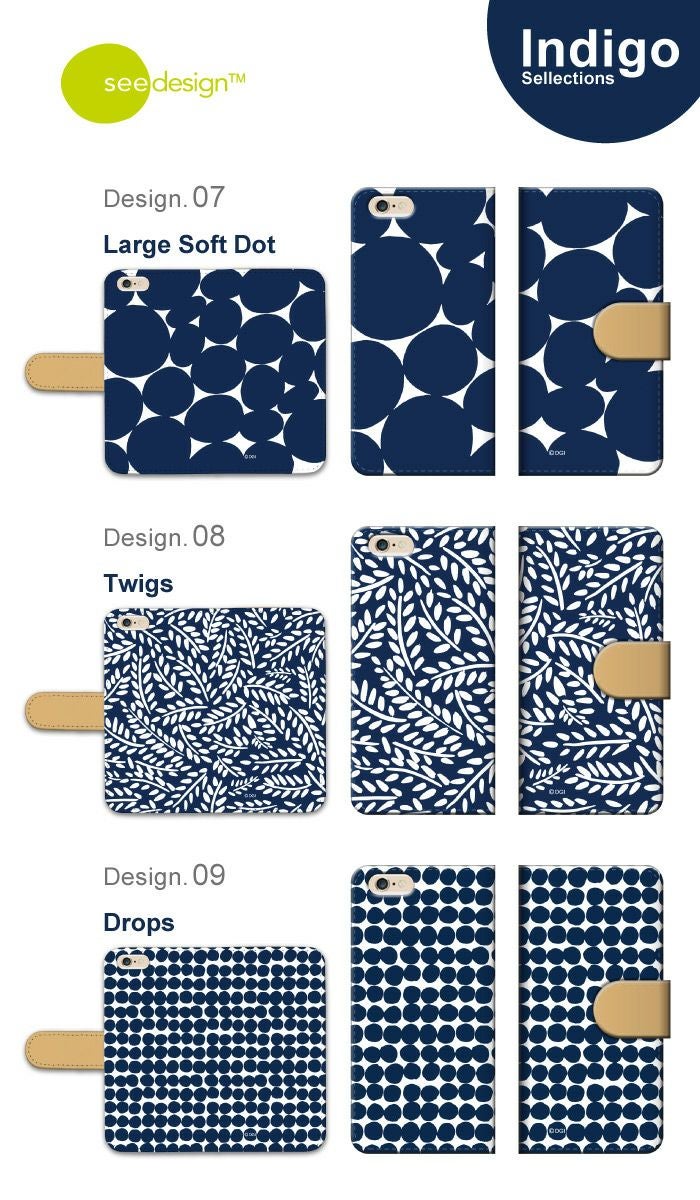 【 see design™ 】全機種対応 手帳型ケース インディゴ 北欧テイスト 正規品