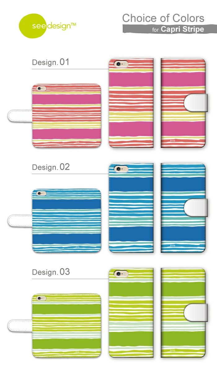 【 see design™ 】全機種対応 手帳型ケース Capri Stripe 北欧テイスト 正規品