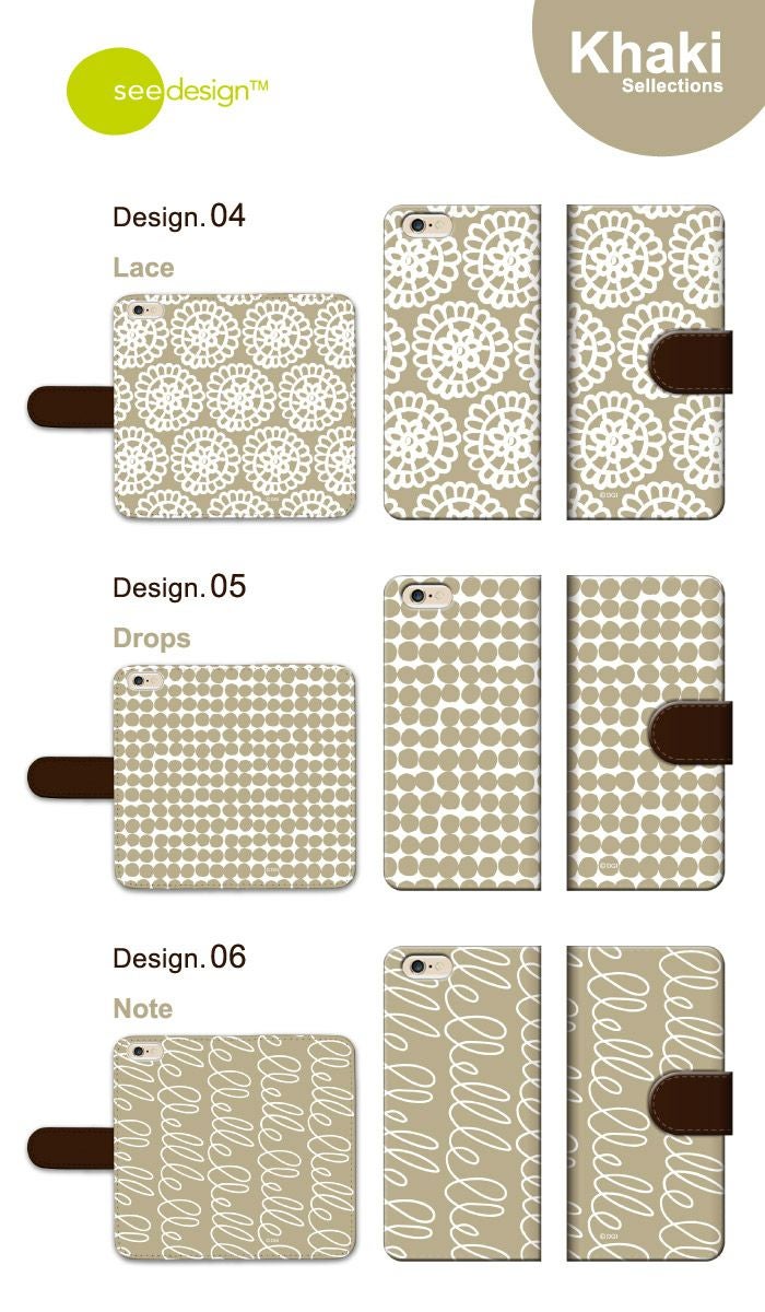 【 see design™ 】全機種対応 手帳型ケース カーキコレクション 北欧テイスト 正規品