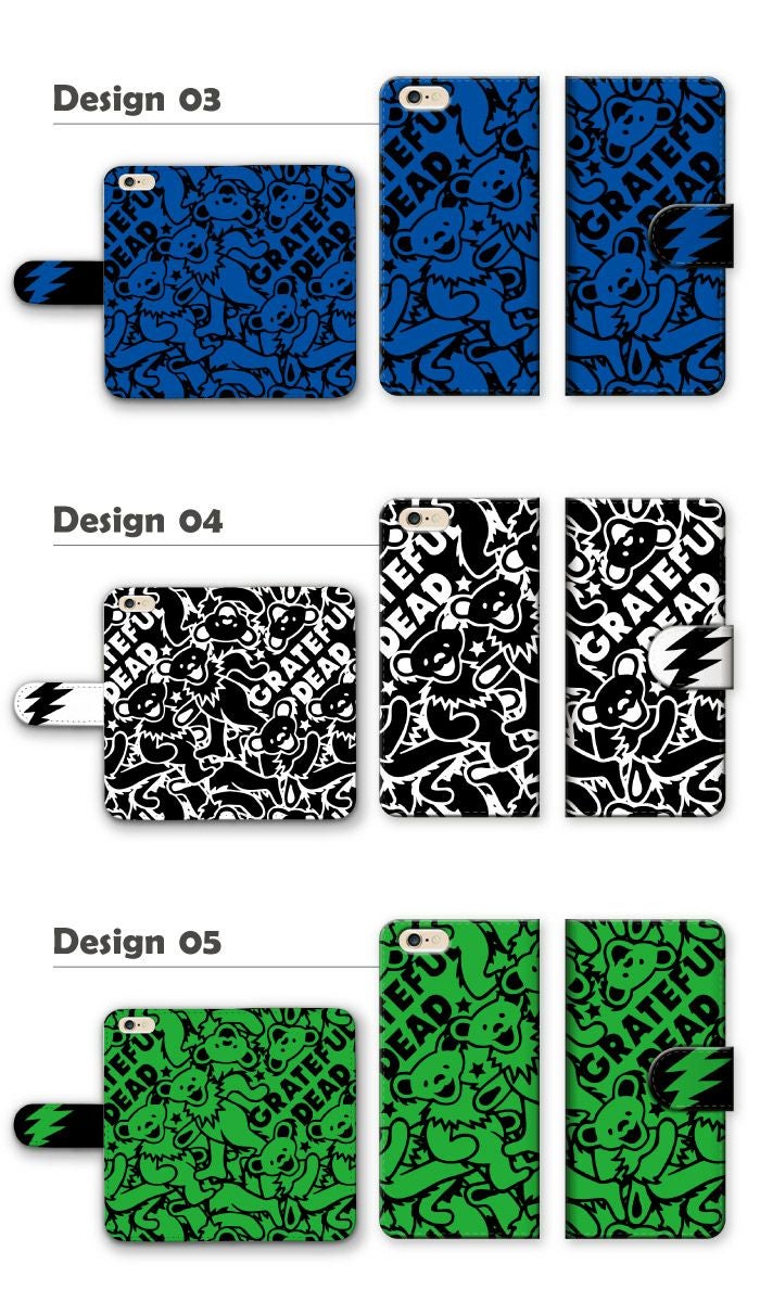 【 GRATEFUL DEAD 】全機種対応 手帳型ケース グレイトフル・デッド デッドベアー ロゴ 正規品