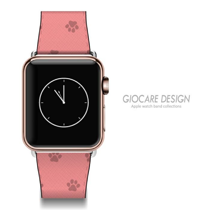 検索ワード:Apple watch バンド ベルト アクセサリー アップルウォッチ ウォッチ(時計)用 オプション 送料無料 38mm 42mm ラグ付き 猫 足跡 肉球 ねこ にゃんこ ニャンコ ネコ サーモンピンク ピンク