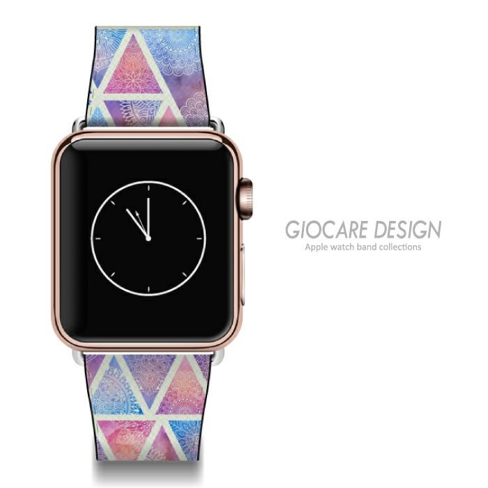 検索ワード:Apple watch バンド ベルト アクセサリー アップルウォッチ ウォッチ(時計)用 オプション 送料無料 38mm 42mm ラグ付き 幾何学模様 ジオメトリック 三角 モザイク ピンク ブルー