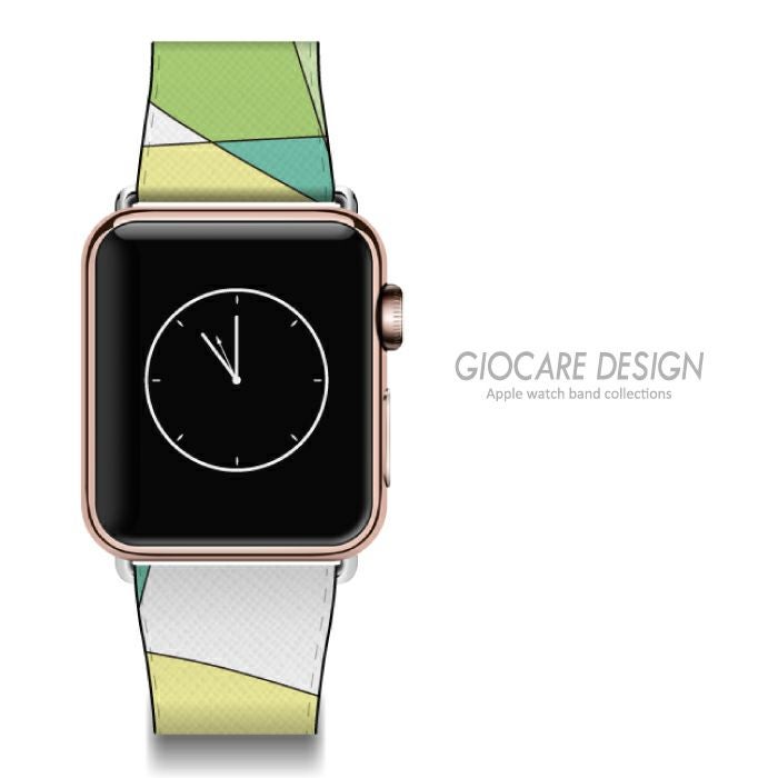 検索ワード:Apple watch バンド ベルト アクセサリー アップルウォッチ ウォッチ(時計)用 オプション 送料無料 38mm 42mm ラグ付き 幾何学模様 ジオメトリック モザイク イエロー グリーン
