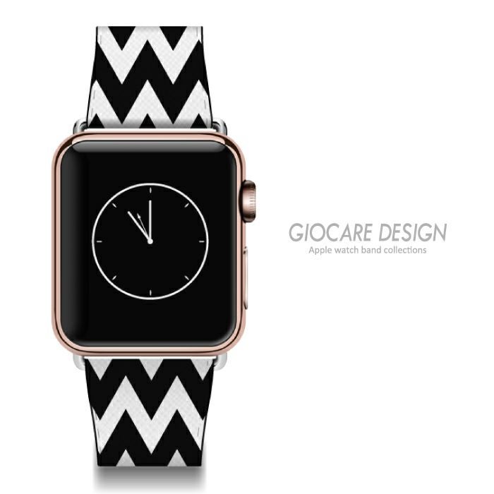 検索ワード:Apple watch バンド ベルト アクセサリー アップルウォッチ ウォッチ(時計)用 オプション 送料無料 38mm 42mm ラグ付き シンプルデザイン シェブロン柄 ホワイト ブラック 白黒 モノトーン