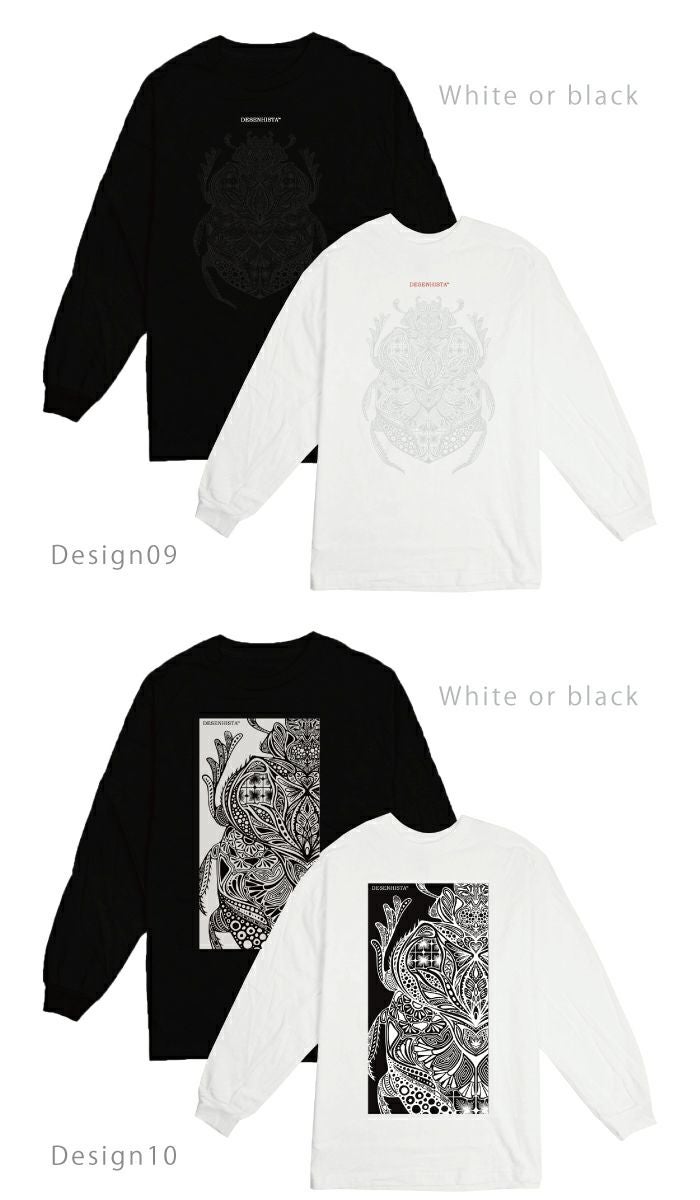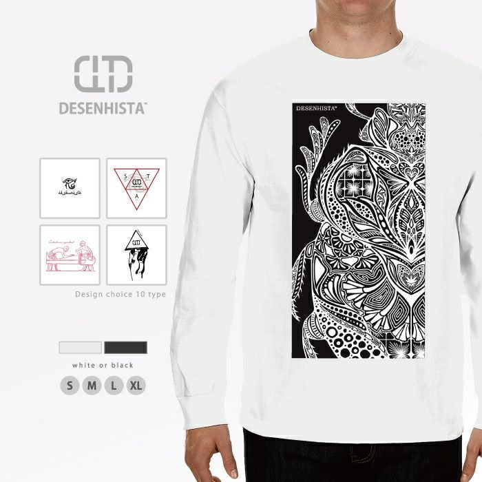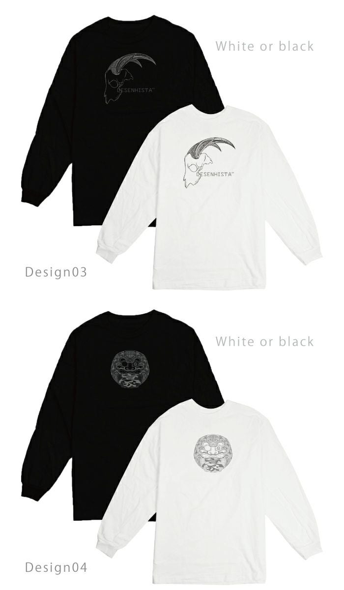 【 DESENHISTA™ 】ユニセックス 男女兼用 ロングTシャツ モノクロ タトゥー