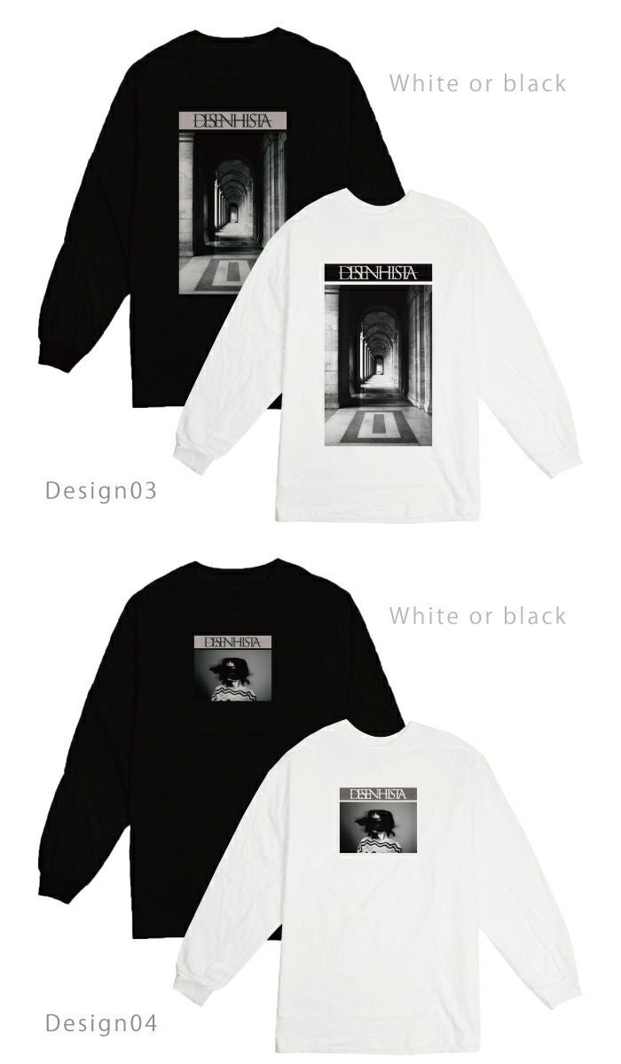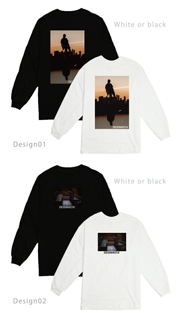 【 DESENHISTA™ 】ユニセックス 男女兼用 ロングTシャツ モノクロ フォトT