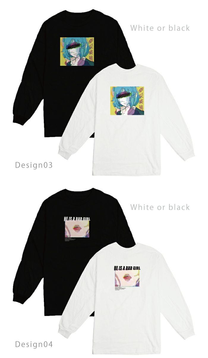 【 DESENHISTA™ 】ユニセックス 男女兼用 ロングTシャツ グリッチ アニメ
