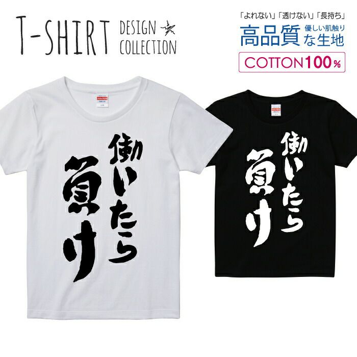 レディース Tシャツ 働いたら負け 書道 デザイン シンプル 白黒
