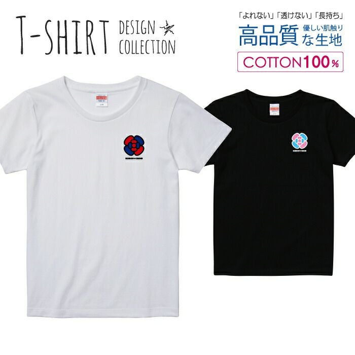 レディース Tシャツ リボンクロス 花 カメリア ネイビー/レッド ワンポイント