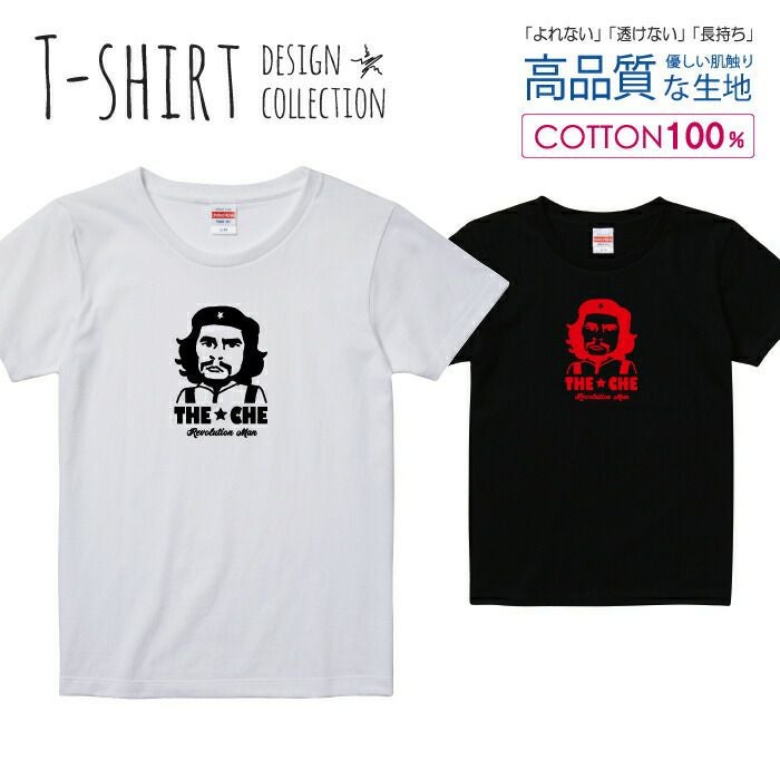 レディース Tシャツ チェ・ゲバラ 英雄 革命家 白黒 似顔絵 イラスト