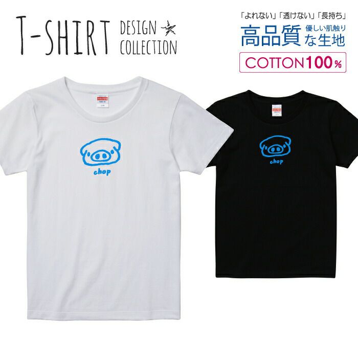 レディース Tシャツ 可愛い ぶたさん chop チョップ かわいいデザイン ブルー