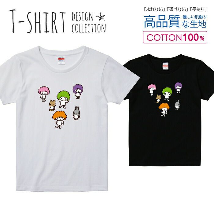 レディース Tシャツ 可愛いキャラクター うさぎとキッズ カラフル