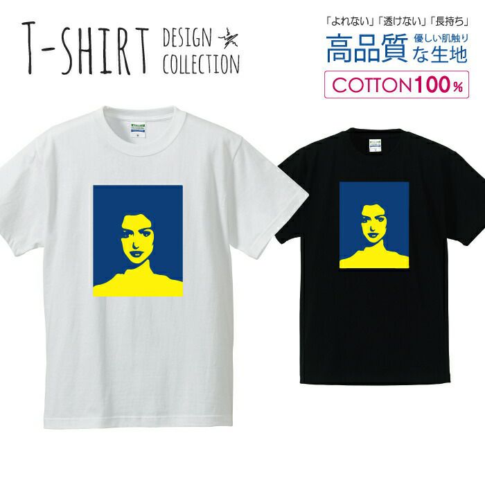 メンズ Tシャツ ポスターアート 女性 ブルー/イエロー