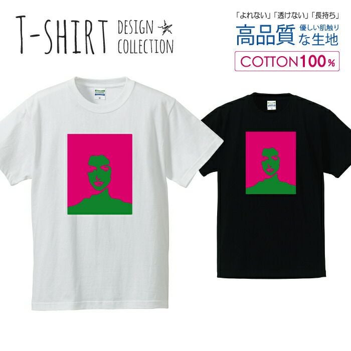 メンズ Tシャツ ポスターアート 女性 ピンク/グリーン