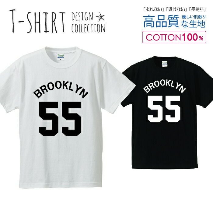 メンズ Tシャツ BROOKLYN 55 ロゴTシャツ デザイン シンプル 白黒