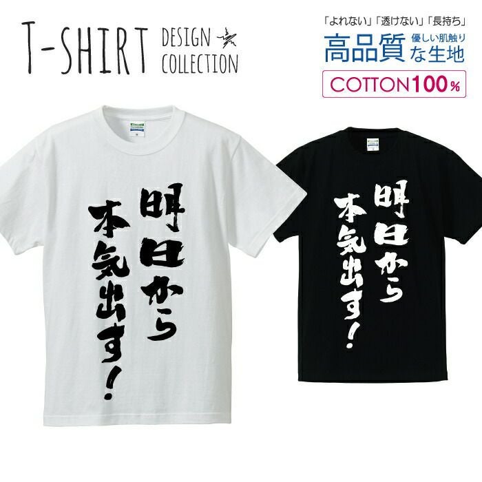 メンズ Tシャツ 明日から本気出す! 書道 デザイン シンプル 白黒