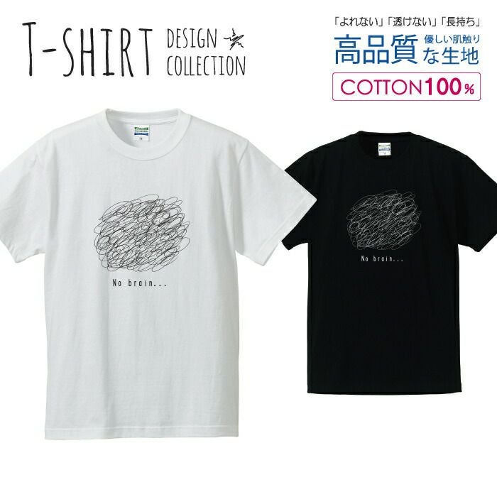 メンズ Tシャツ くるくる no brain 脳なし シンプル 白黒