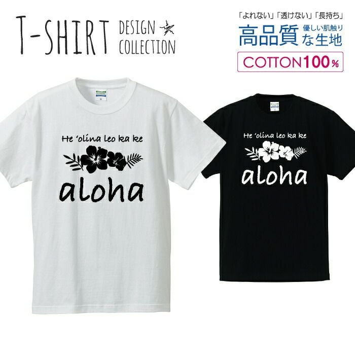 メンズ Tシャツ アロハ ALOHA ハイビスカス デザイン 白黒