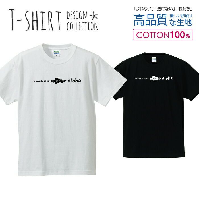 メンズ Tシャツ アロハ ALOHA ハイビスカス デザイン 白黒