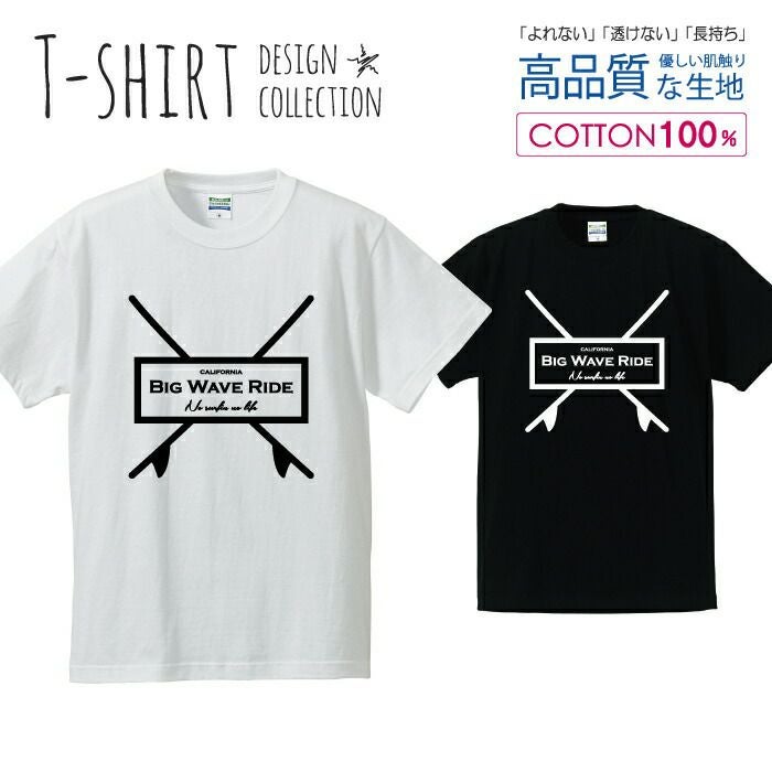 メンズ Tシャツ BIG WAVE RIDE サーファー サーフィン デザイン 白黒