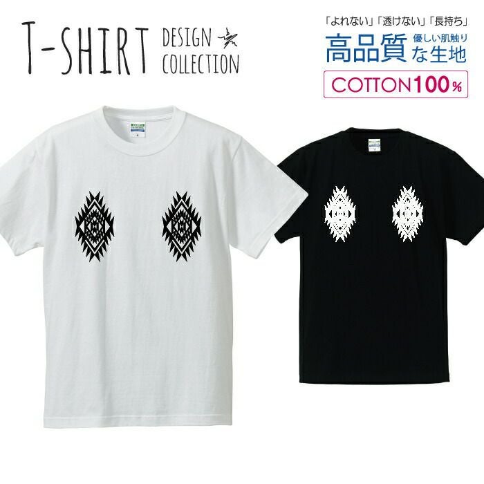 メンズ Tシャツ ネイティブ オルテガ柄 白黒