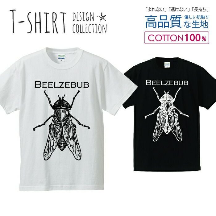 メンズ Tシャツ ハエ 蠅の王 ベルゼブブ 悪魔 白黒 イラスト