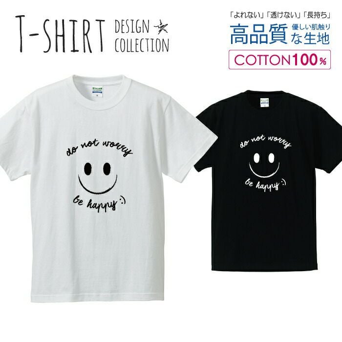 メンズ Tシャツ スマイル 心配しないで シンプルデザイン 白黒