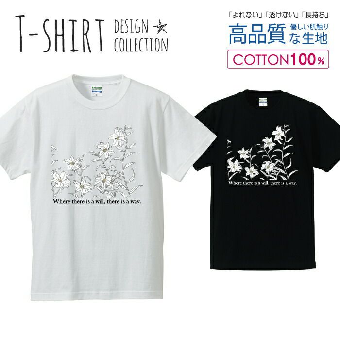 メンズ Tシャツ ボタニカル 百合 花 英文 意志あるところに道はひらける