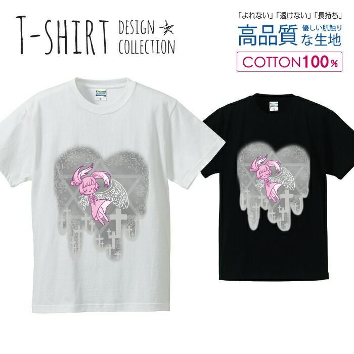 メンズ Tシャツ ハート デザイン エンジェル 天使 六芒星 ピンク/グレー