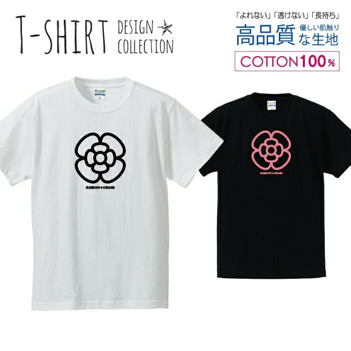 メンズ Tシャツ リボンクロス 花 カメリア シンプル デザイン