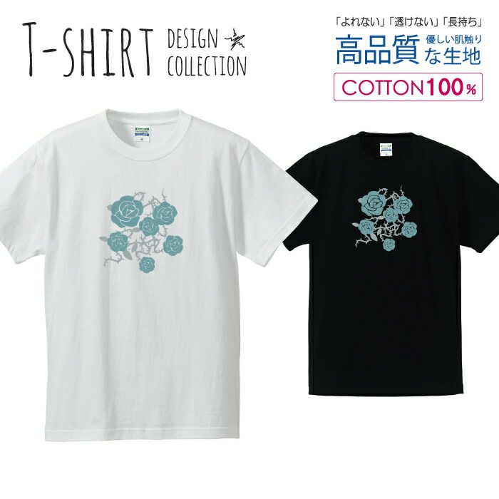 メンズ Tシャツ バラ 薔薇 ばら 花柄 フラワー ブルー かわいいデザイン