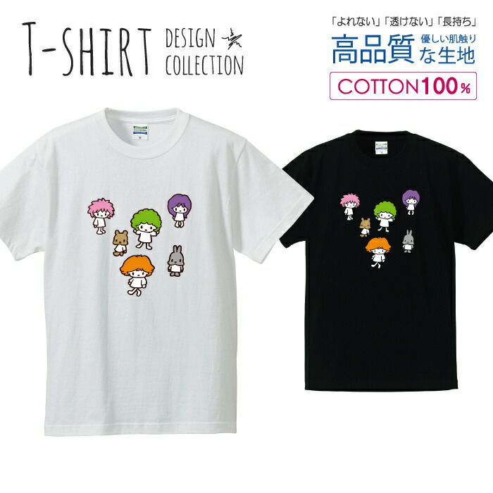 メンズ Tシャツ 可愛いキャラクター うさぎとキッズ カラフル