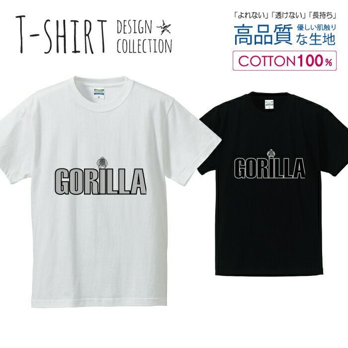 メンズ Tシャツ ゴリラ GORILLA ロゴTシャツ 白黒 グレー