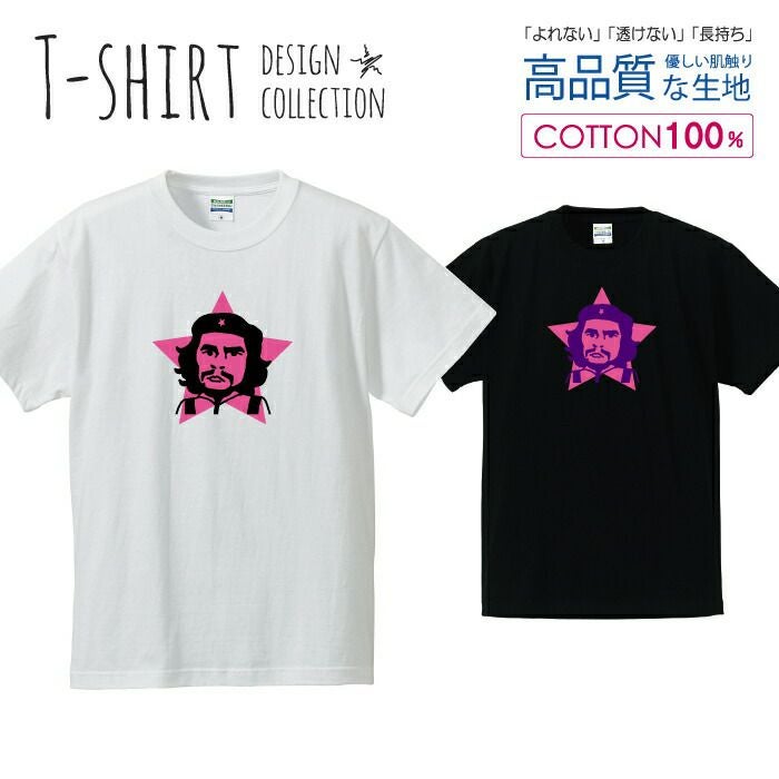 メンズ Tシャツ チェ・ゲバラ 英雄 革命家 星 スター/ピンク 似顔絵 イラスト