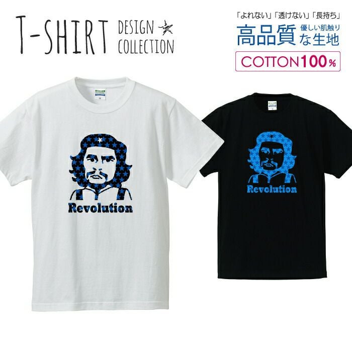 メンズ Tシャツ チェ・ゲバラ 英雄 革命家 星 スター/ブルー 似顔絵 イラスト