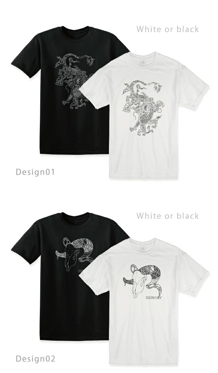 【 DESENHISTA™ 】ユニセックス 男女兼用 Tシャツ モノクロ タトゥー