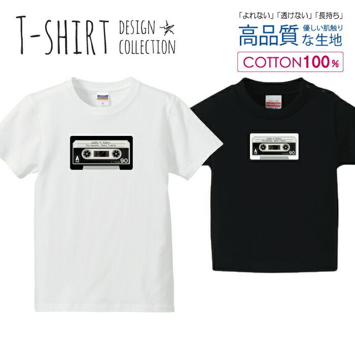キッズ Tシャツ カセット アナログ レトロ デザイン シンプル 白黒