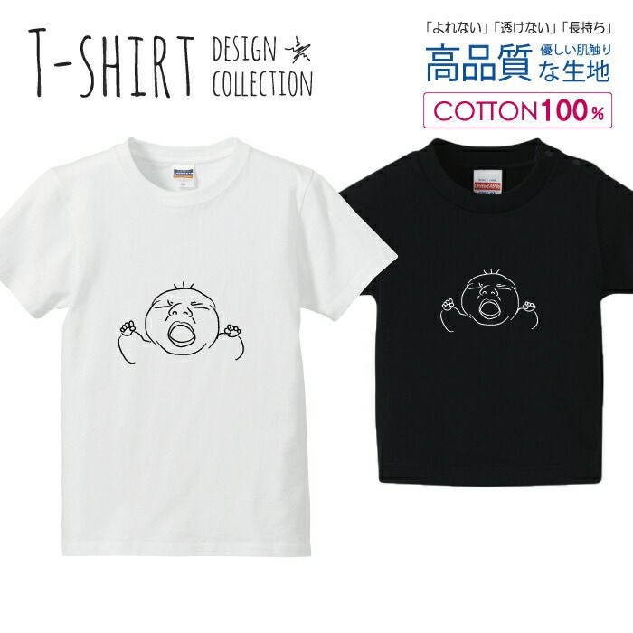 キッズ Tシャツ あくび 赤ちゃん ベビー 手書き風 シンプルデザイン