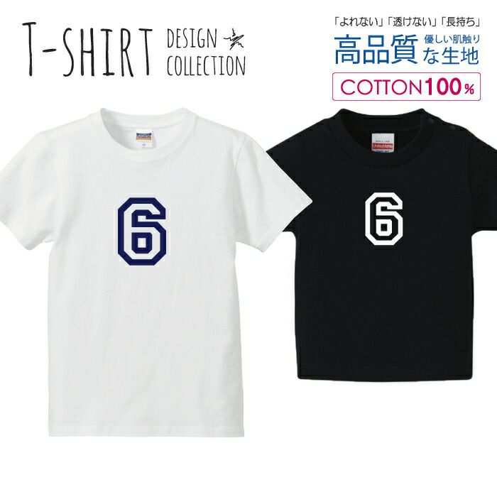 キッズ Tシャツ ナンバー 6 背番号 数字 シンプルデザイン ネイビー