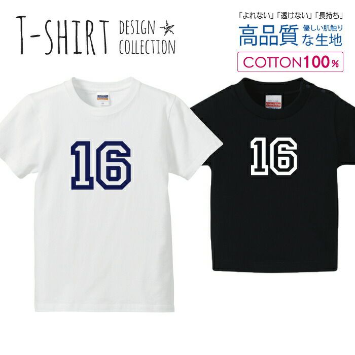 キッズ Tシャツ ナンバー 16 背番号 数字 シンプルデザイン ネイビー
