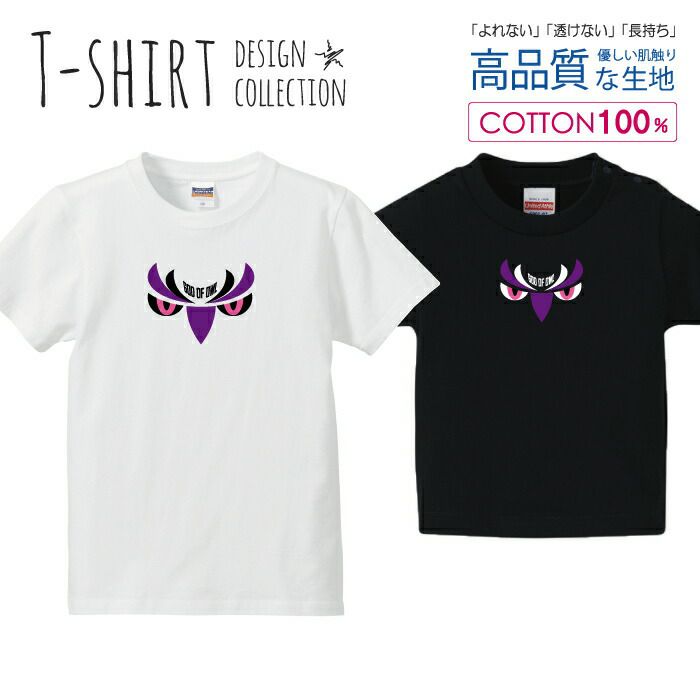 キッズ Tシャツ フクロウ 梟 鳥 猛禽類 かっこいいデザイン パープル 紫