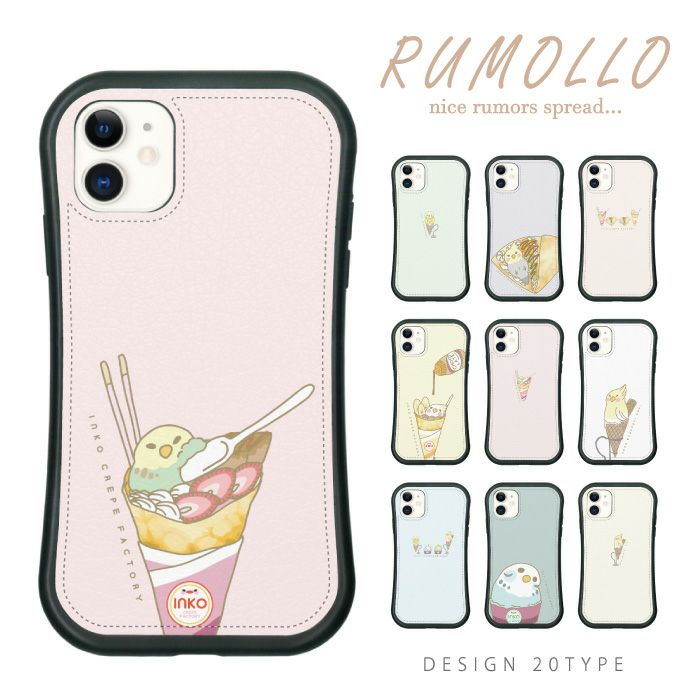 RUMOLLO 耐衝撃TPUレザーケース iPhoneケース インコ インコアイス 鳥 クレープ スイーツ 小鳥