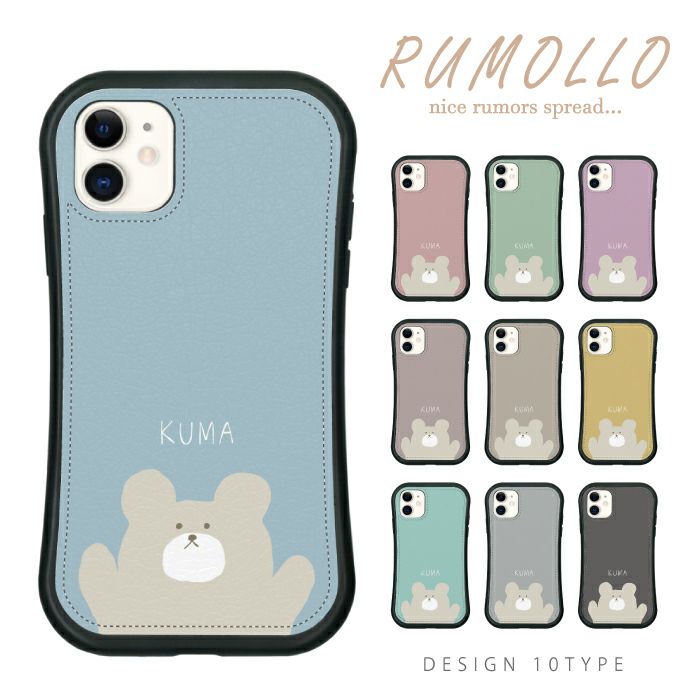 RUMOLLO 耐衝撃TPUレザーケース iPhoneケース くま テディベア くすみカラー シンプル