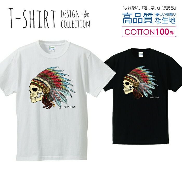 メンズ Tシャツ ネイティブ デザイン スカル 骸骨 髑髏 ドクロ インディアン