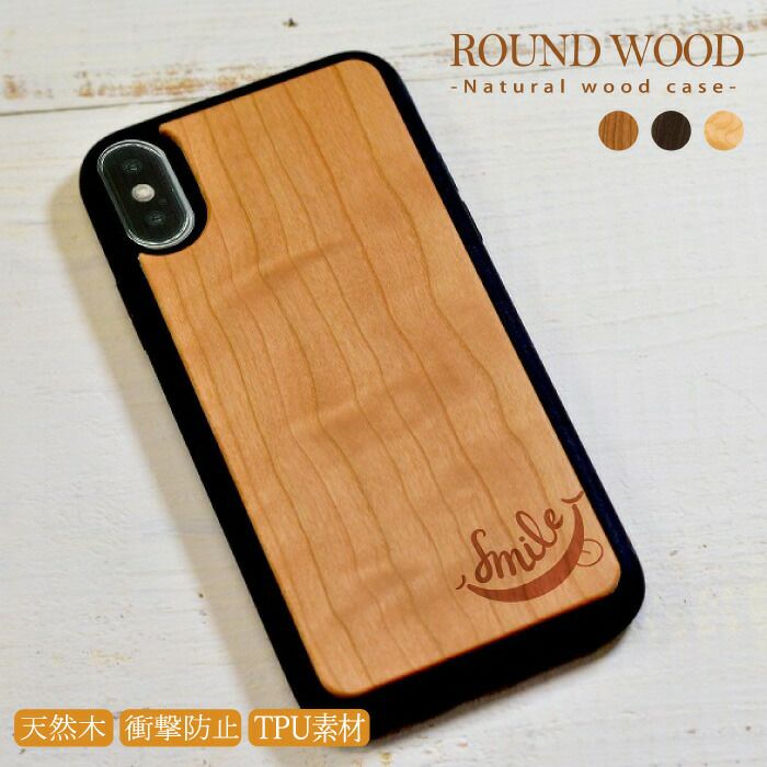 耐衝撃 木製スマホケース ウッドケース スマイル smile